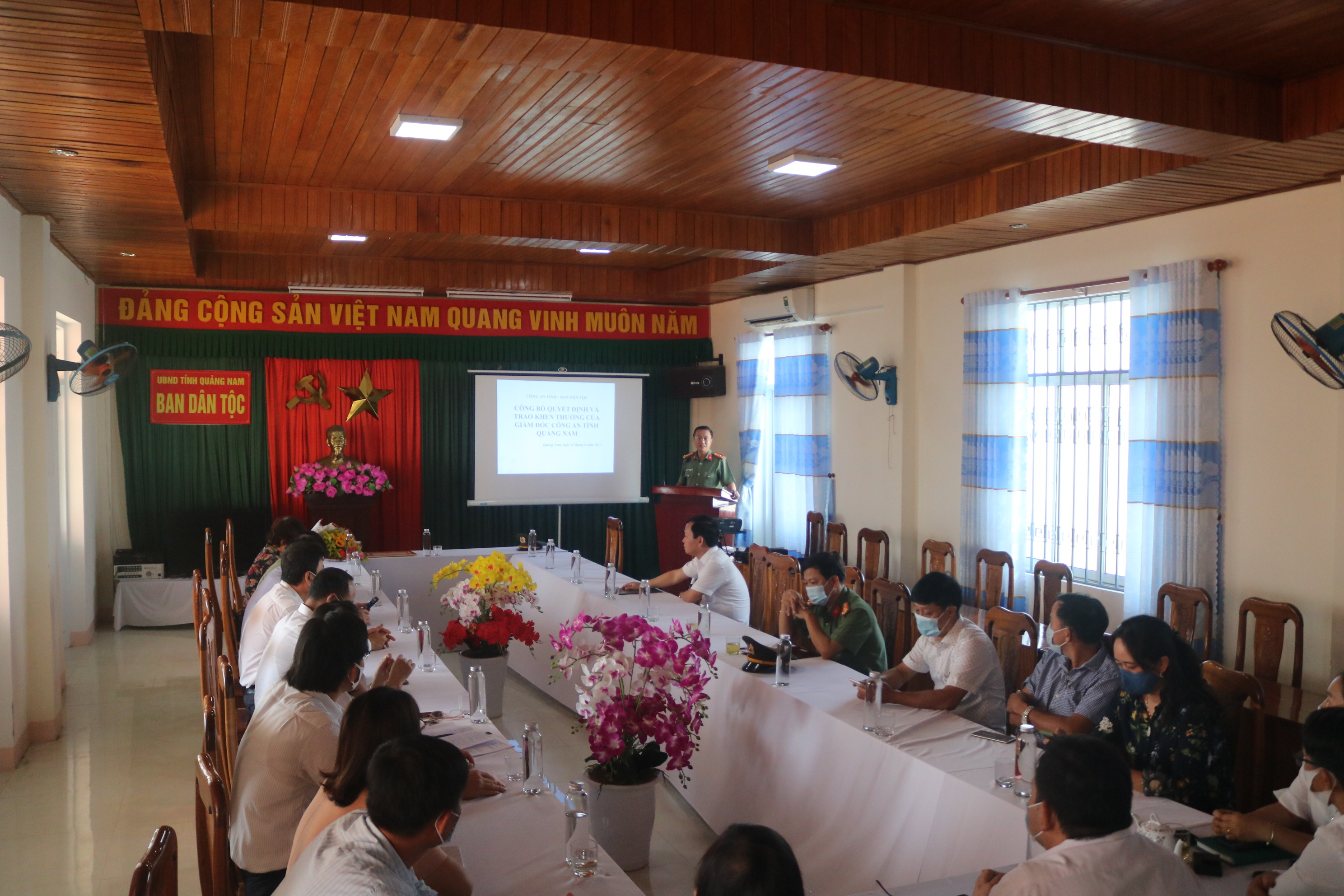 Công an tỉnh công bố quyết định và tặng Giấy khen của Giám đốc Công an tỉnh cho cán bộ, công chức, nhân viên cơ quan Ban Dân tộc tỉnh Quảng Nam, đã có thành tích xuất sắc trong Phong trào toàn dân bảo...