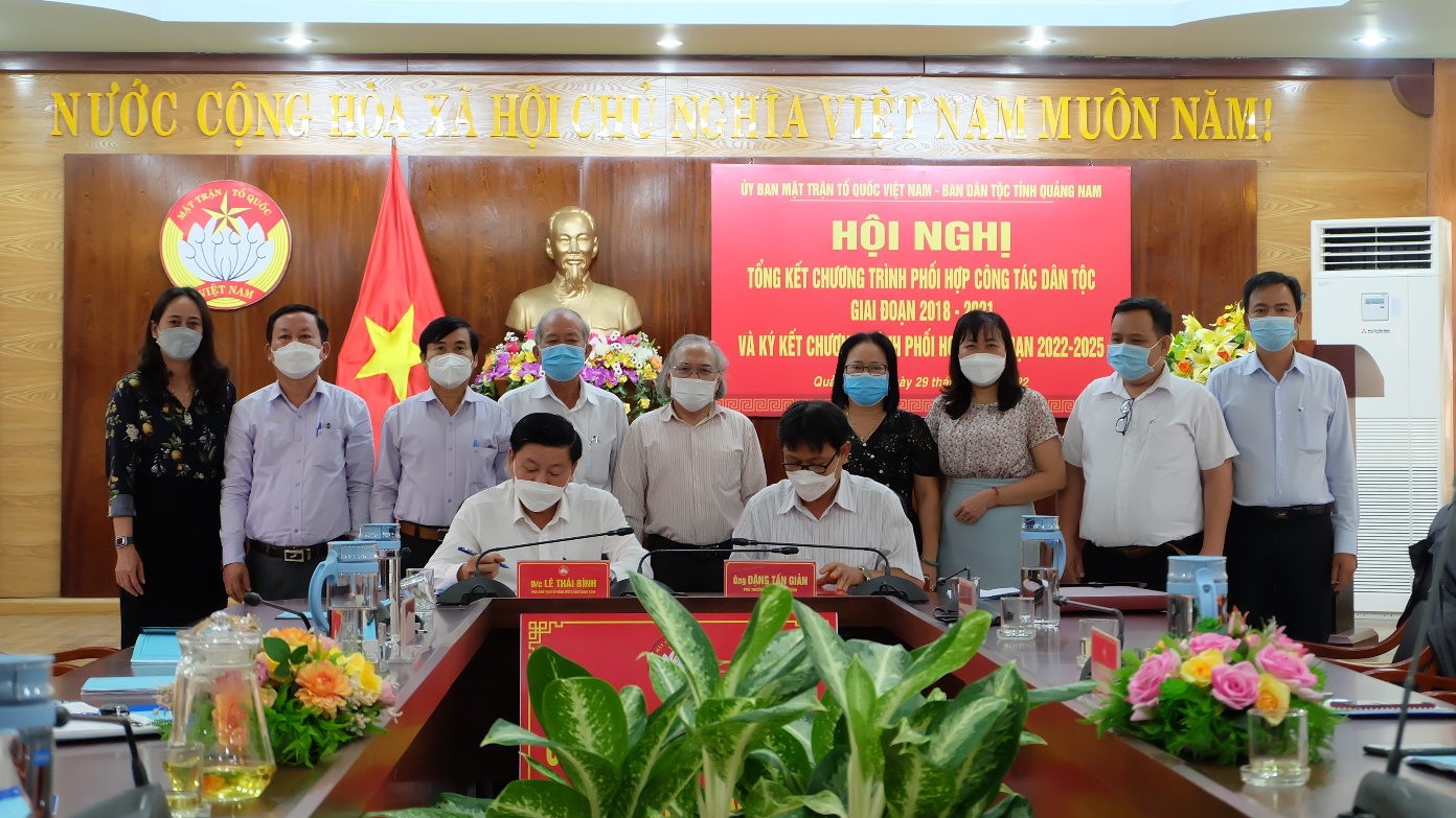 Ngày 29/3/2022, tại hội trưởng Ủy ban Mặt trận tổ quốc Việt Nam tỉnh Quảng Nam, Ban Dân tộc tỉnh và Thường trực UBMTTQVN tỉnh đã tổ chức Hội nghị tổng kết Chương trình phối hợp công tác Dân tộc giai đoạn 2018-2021 và ký kết Chương trình phối hợp công tác giai đoạn 2022-2025.