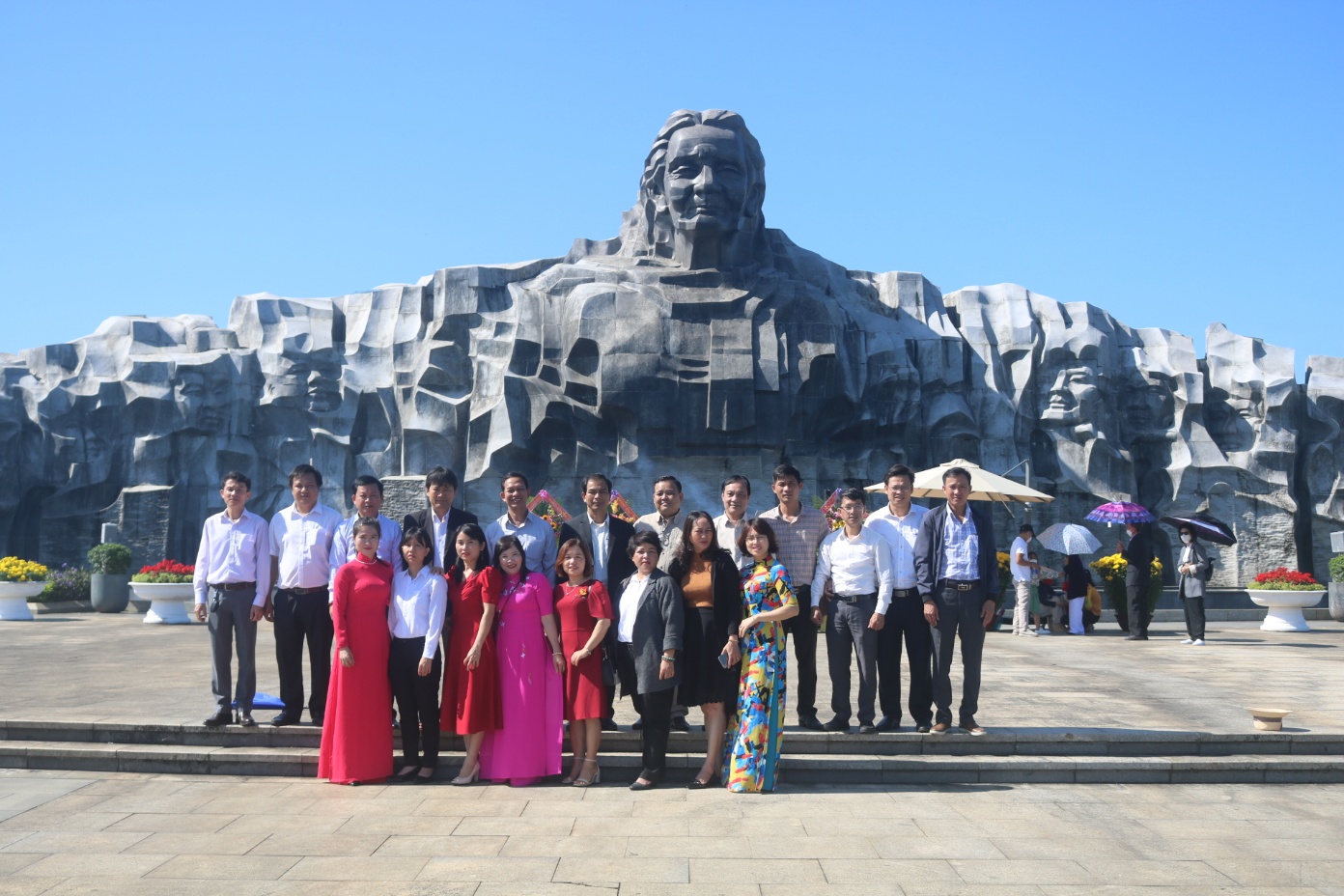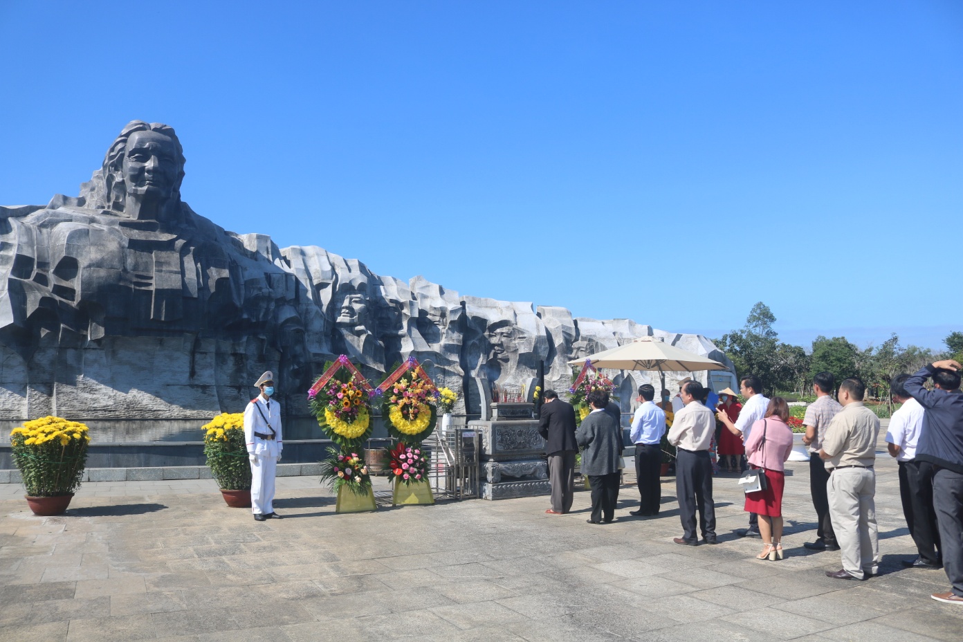 Tập thể cán bộ, công chức Ban Dân tộc thực hiện nghi thức dâng hoa, viếng hương tại Tượng đài Mẹ Việt Nam anh Hùng - Xuân Nhâm Dần năm 2022