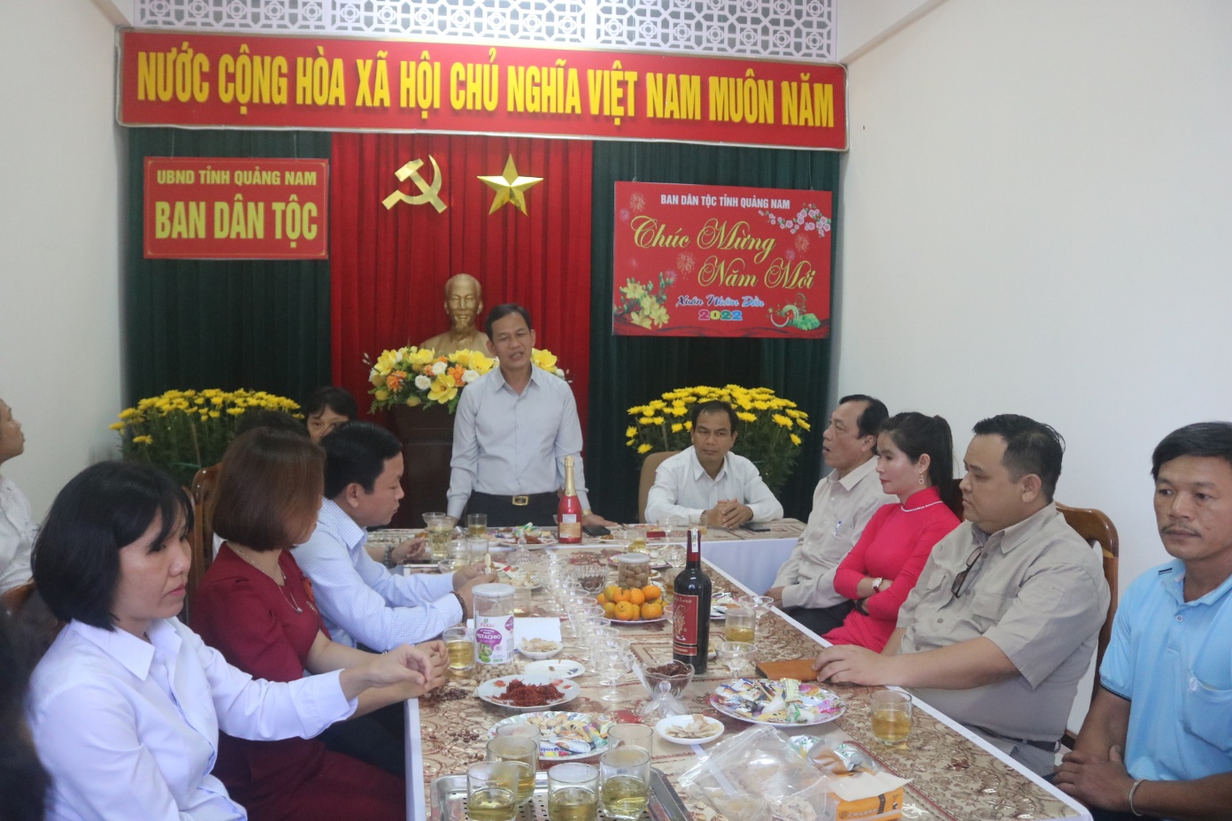Đoàn CBCC cơ quan Ban Dân tộc chụp ảnh lưu niệm trước Tượng đài Mẹ Việt Nam anh hùng - Xuân Nhâm Dần năm 2022Sau buổi Lễ dâng hoa tưởng niệm, toàn thể CBCC, NLĐ cơ quan Ban Dân tộc đã gặp mặt đầu năm. Tại buổi gặp mặt đồng chí Trưởng Ban A Lăng Mai đã chúc mừng toàn thể CBCC, NLĐ cơ quan năm mới dồi dào sức khỏe, hạnh phúc, đoàn kết và phấn đấu hoàn thành xuất sắc các nhiệm vụ chính trị được giao trong năm 2022, trọng tâm là thực hiện thắng lợi Chương trình mục tiêu quốc gia phát triển kinh tế - xã hội vùng đồng bào dân tộc thiểu số và miền núi tỉnh Quảng Nam giai đoạn I (2021-2025), góp phần thực hiện thắng lợi Nghj quyết Đại hội Đảng bộ tỉnh Quảng Nam lần thứ XXII, nhiệm kỳ 2020-2025.