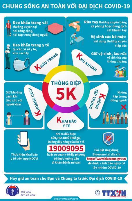 3. Mọi người dân cần thực hiện tốt thông điệp: “5K + vắc xin + xét nghiệm + ý thức người dân” để bảo vệ an toàn cho bản thân, gia đình và cộng đồng trước đại dịch Covid -19.