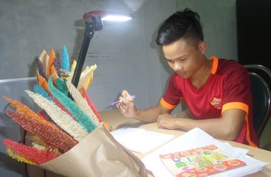 Hồ Minh Đức đang ở TP.Đà Nẵng học tiếng Nga để chuẩn bị hành trang cho con đường du học tại Nga. Ảnh:Như Trang