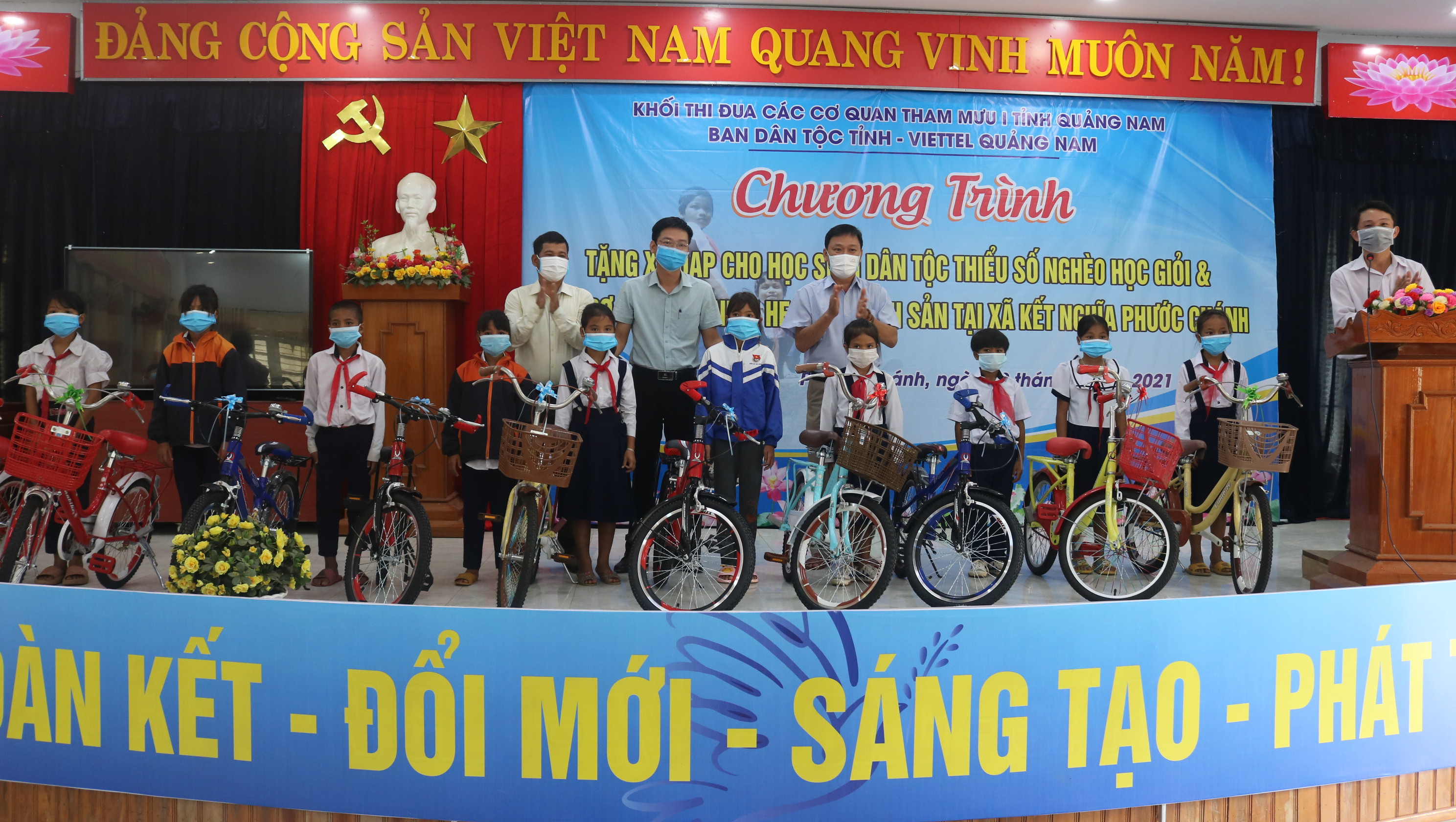 Bên cạnh mô hình nuôi heo đen sinh sản, Ban Dân tộc tỉnh cũng đã phối hợp với Khối thi đua các cơ quan tham mưu I tỉnh Quảng Nam vừa tổ chức hoạt động trao tặng 20 chiếc xe đạp cho 20 học sinh dân tộc thiểu số học giỏi có hoàn cảnh khó khăn tại xã Phước Chánh; qua đó góp phần cùng gia đình và chính quyền địa phương chăm lo, động viên các em tiếp tục phấn đấu vươn lên, vượt qua khó khăn để đến trường học tập, rèn luyện tốt.