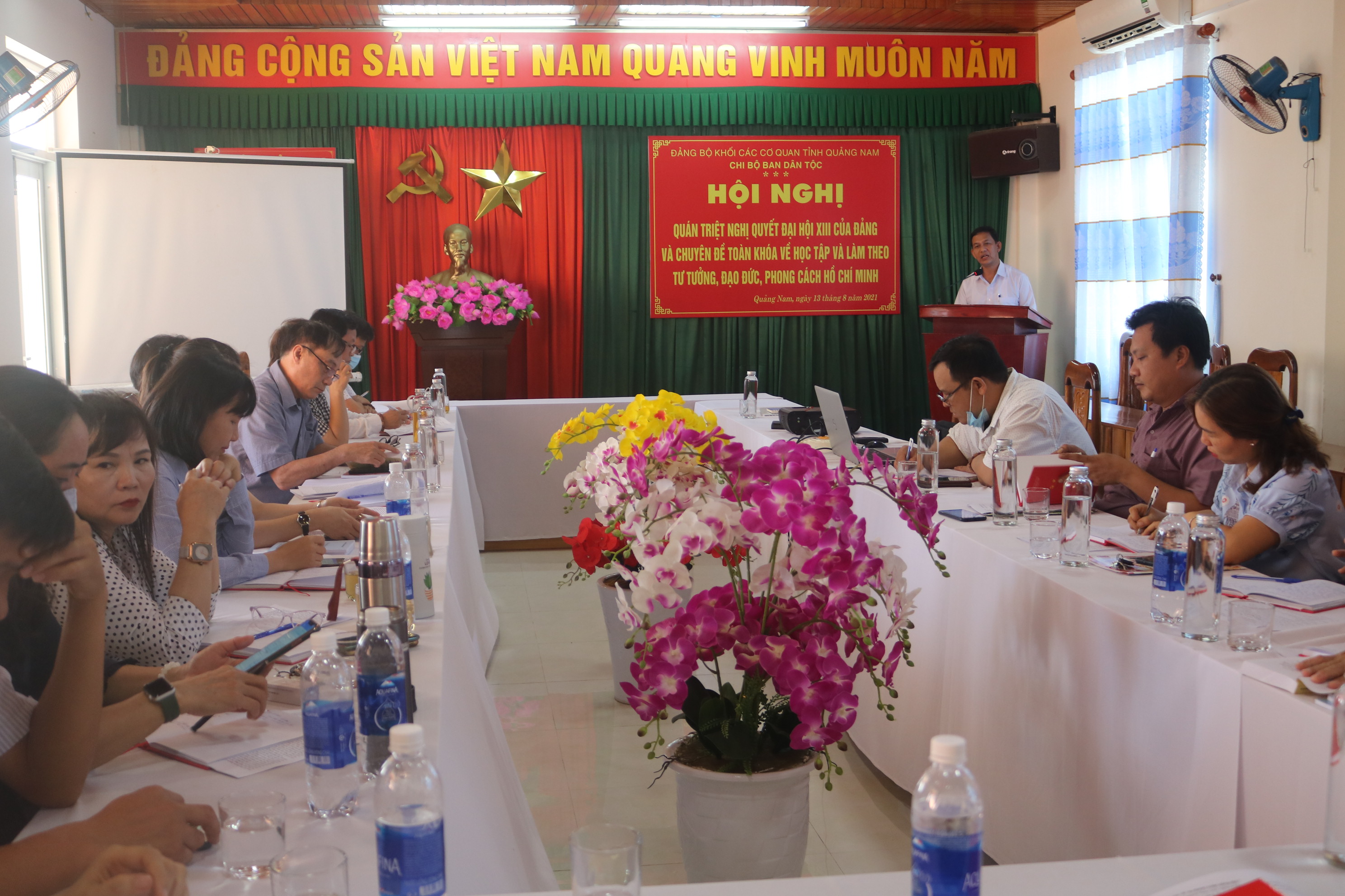 Ngày 13/8/2021, Chi bộ Ban Dân tộc tỉnh đã tổ chức Hội nghị học tập, quán triệt Nghị quyết Đại hội lần thứ XIII của Đảng và chuyên đề toàn khóa về học tập và làm theo tư tưởng, đạo đức, phong cách Hồ Chí Minh cho công chức, đảng viên, quần chúng cơ quan. Đồng chí A Lăng Mai-Bí thư Chi bộ và đồng chí Đặng Tấn Giản-Phó Bí thư Chi bộ Ban Dân tộc báo cáo tại Hội nghị.